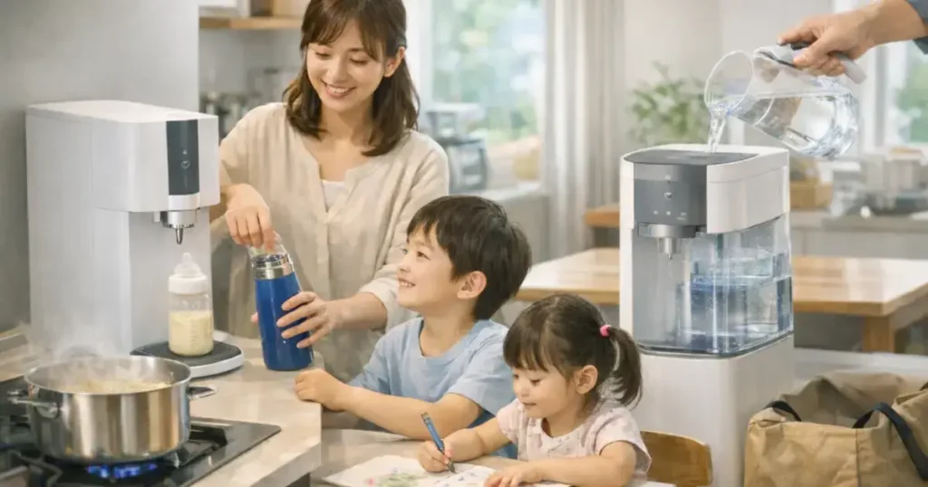 ミルク作りや水筒、料理に使う水が“毎日の当たり前”になっているなら、相性はかなり良いです。