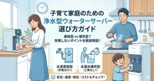 浄水型ウォーターサーバーを検討している子育て家庭なら、きっと「どれがいいのかな」と迷うこともあるかもしれませんね。